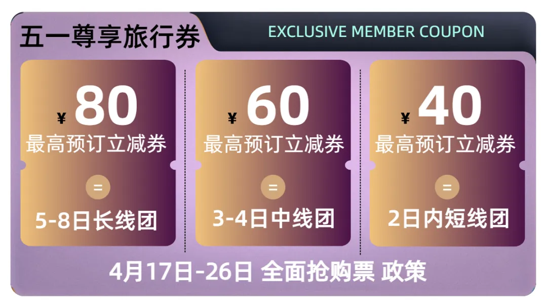 3天火车团&大巴团立减40/人;