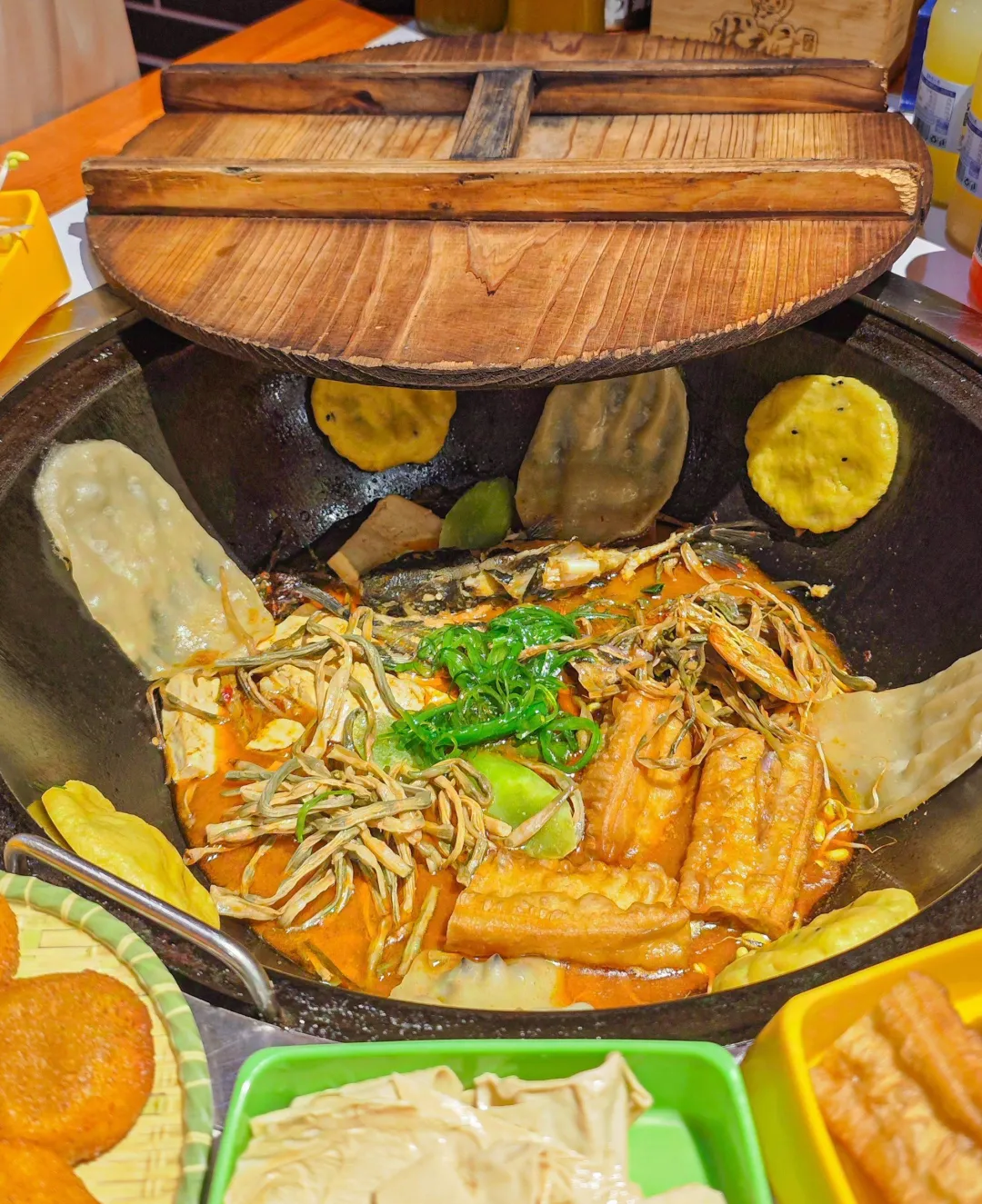 吃饭的话千万别在景区门口吃,那些餐馆都死贵死贵的,随便点几个菜就一两百了。往里走个几百米,有条小街,都是本地人吃的馆子,价格合理多了,我们点了三个菜一个汤,才七十多块钱,味道还特别正宗,那个地锅鸡我现在想起来都流口水