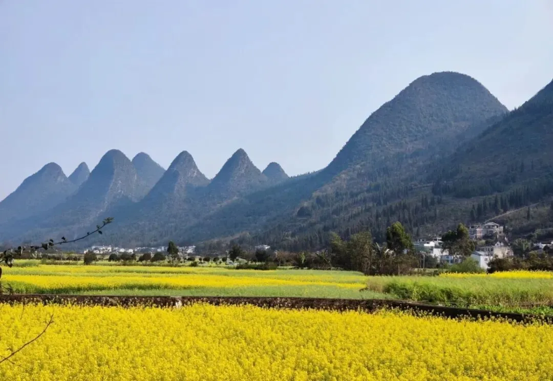 2-3月(油菜花季·强推):峰林脚下的梯田开满金黄油菜花,青黛山峰与金黄花海交相辉映,微风拂过,花香四溢,搭配布依村寨的青瓦白墙,宛如油画,是摄影封神季。此时气候温暖,游客适中,可漫步田埂、骑行花海,沉浸式感受田园浪漫,还能体验布依春耕序曲。