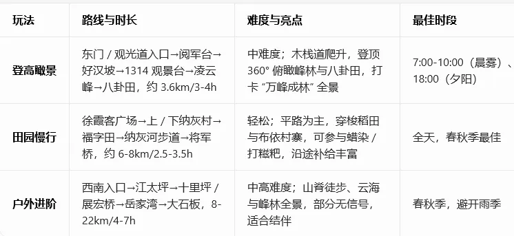 徒步:万峰林徒步主打登高瞰全景、慢行入田园、穿寨识民俗三条主线,覆盖从入门到进阶的不同需求,兼顾视觉震撼与深度体验。