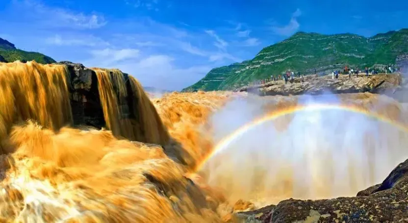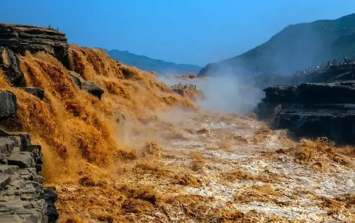 壶口瀑布位于宜川县城东35公里处的秦晋大峡谷黄河河床中,是世界上最大的黄色瀑布,因其气势雄浑而享誉中外。