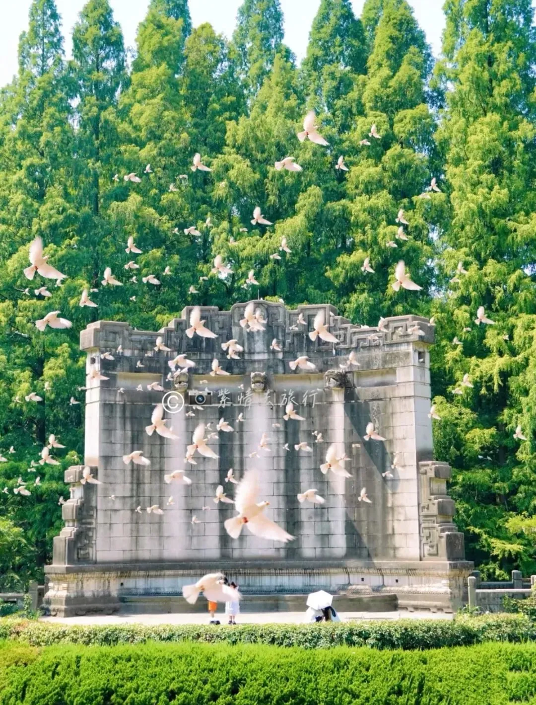 就在中山陵旁边,步行即达。建议11点前到达,大概率能看到鸽群齐飞景象。