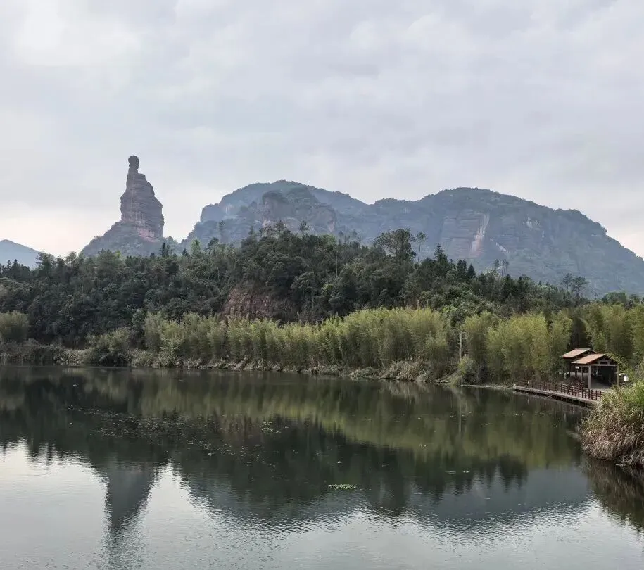 车湾村位于姐妹峰脚下,是锦江画廊水上游8号线的起点,也是环丹霞山碧道的起点。