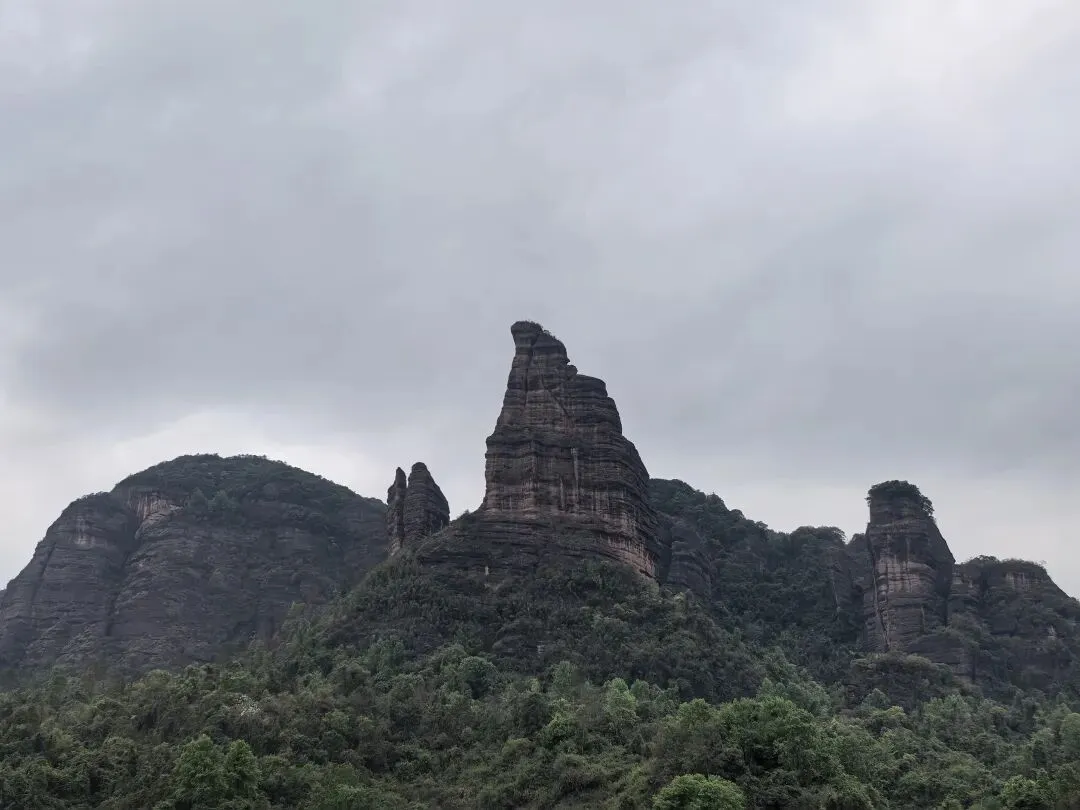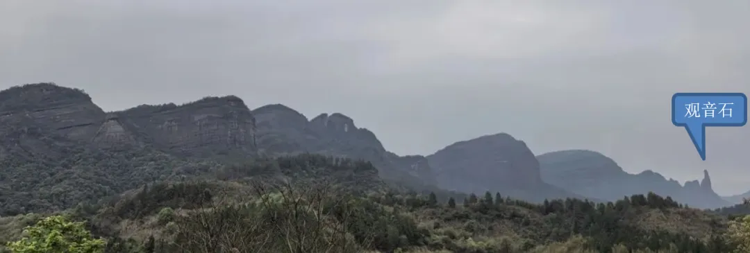 游览完牛鼻村,不要按照导航给出的、在丁字口继续直行的路线走,这里要左转才是阅丹公路。左转后不远就是停车场,一帆风顺瞭望观景台在停车场对面的山上,可以360度欣赏丹霞腹地的美景。风帆石和观音石是一石二景,在牛鼻村看是童子拜观音,换到这里看,石分三瓣,形似风帆。
