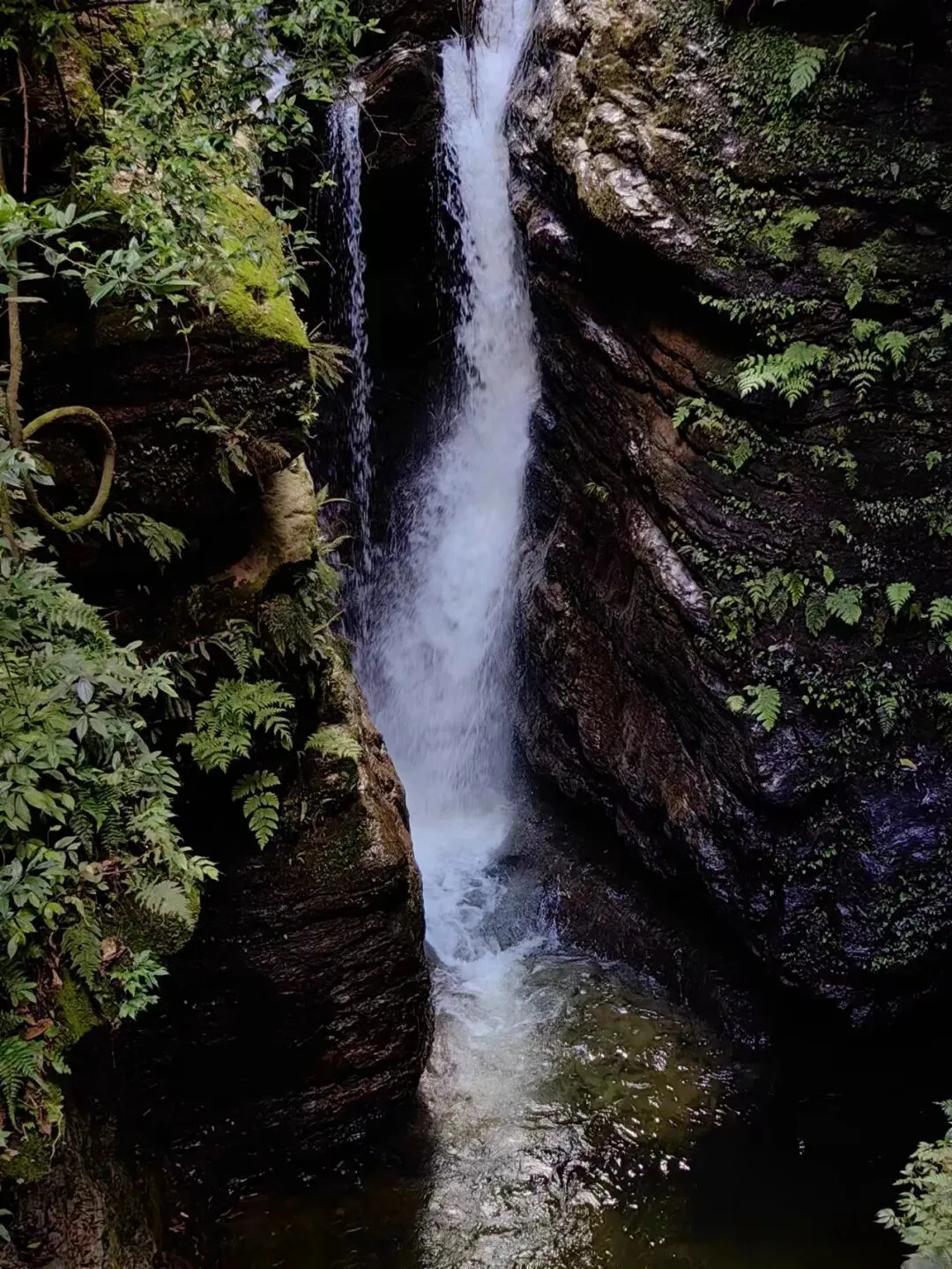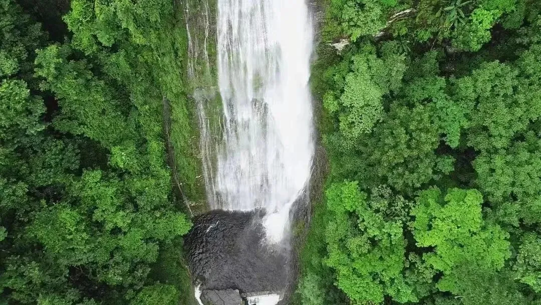 眼看清溪、飞瀑遥挂山腰