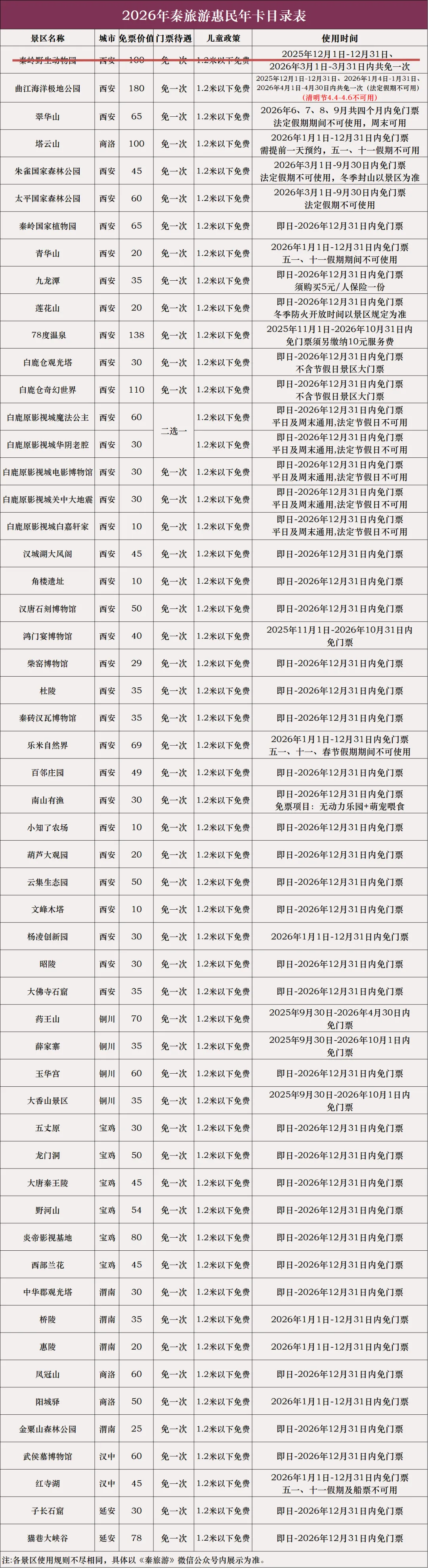 26年秦旅游年卡使用指南请查收
