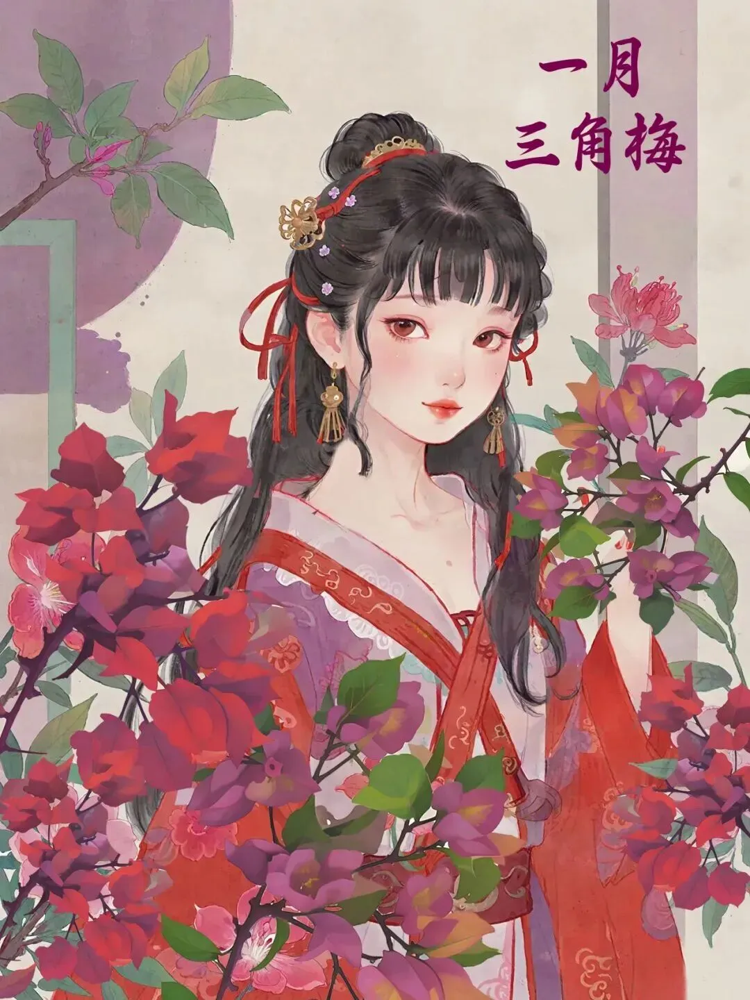 一月令花,三角梅。此花亦为北海市花。一月元始,以市花为初,是借此花之包容,亲和与开放来喻予我们北海的城市性格。有海之包容,有花之美好。