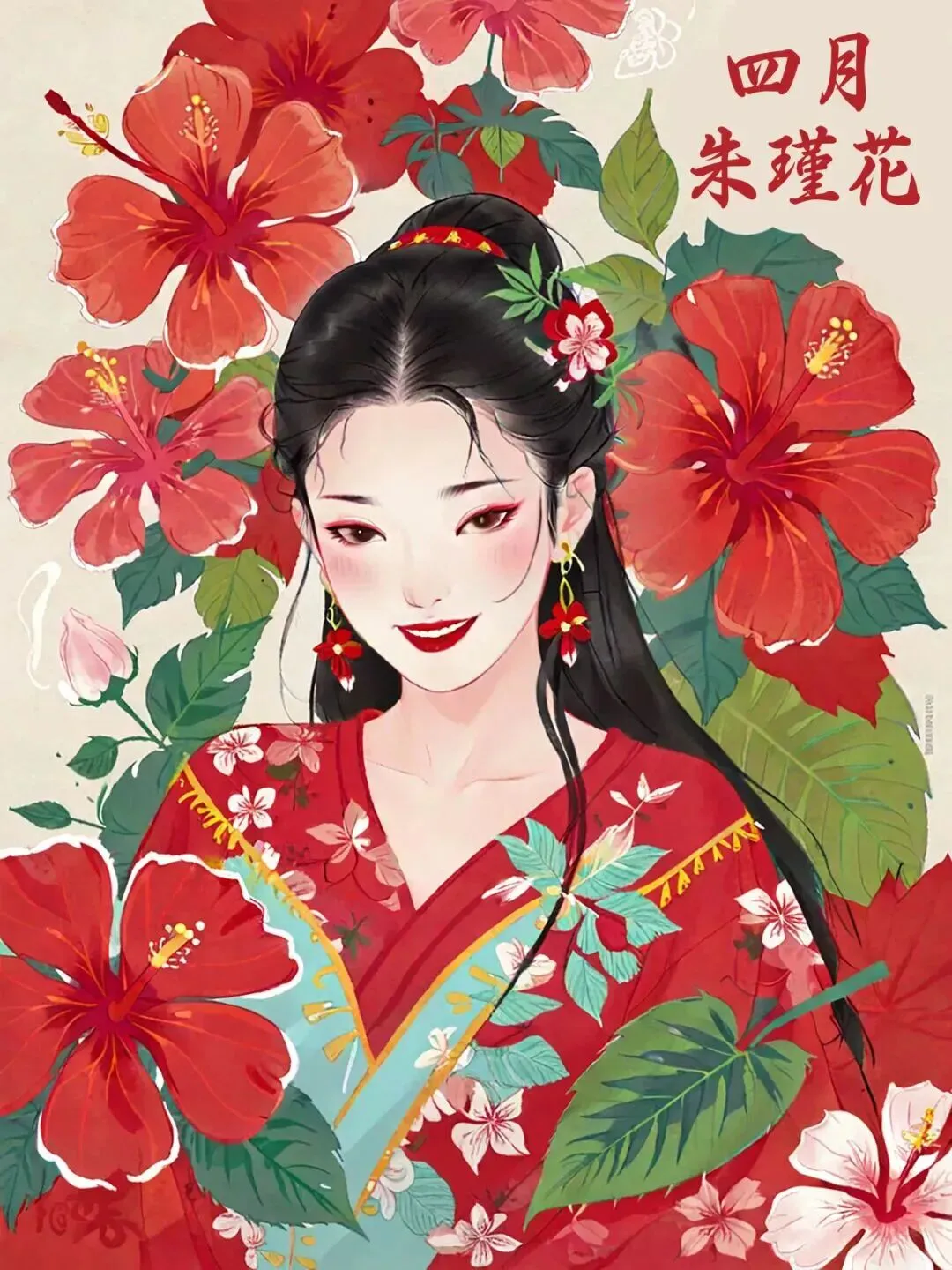 四月初夏将至,阳光普照,朱槿满城。此花又名扶桑,叶光而厚,花冠如漏斗,淡红或淡黄,舒光花瓣,朝开暮落,插枝即活,比拟珠城人民开拓进取之精神。