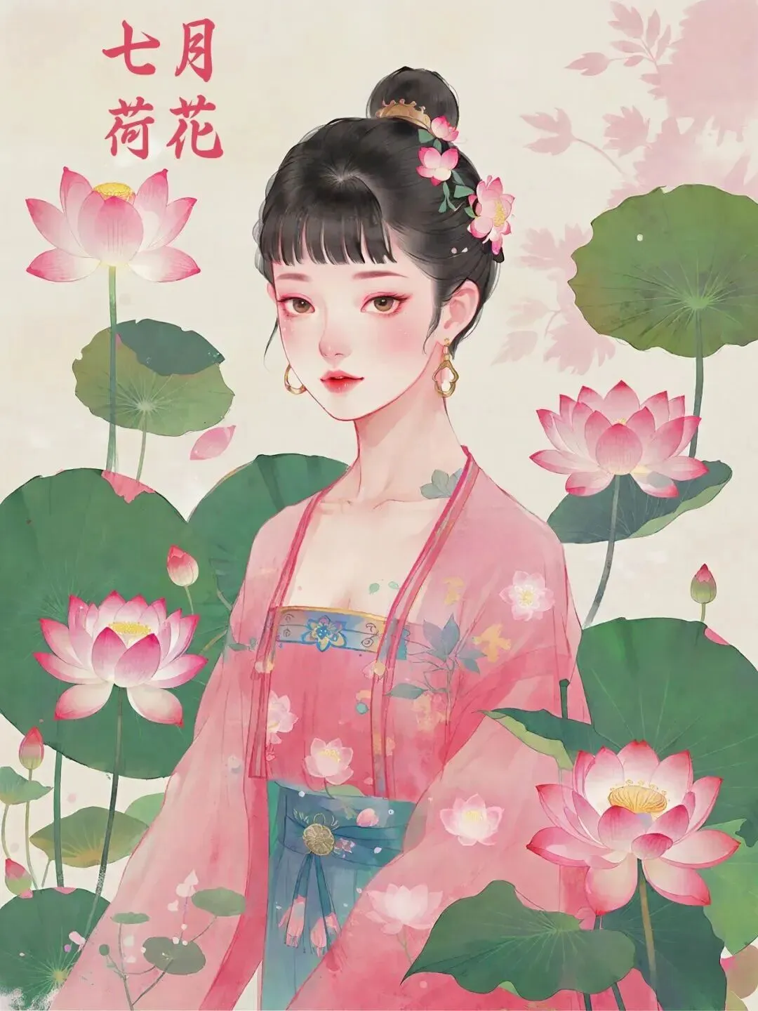 七月盛夏中天,荷花绽放于池,是为当月令。蝉鸣一夏,风吹荷摆,莲蓬满座,粉白淡薄。喻为北海人之追求,出淤泥而不染。