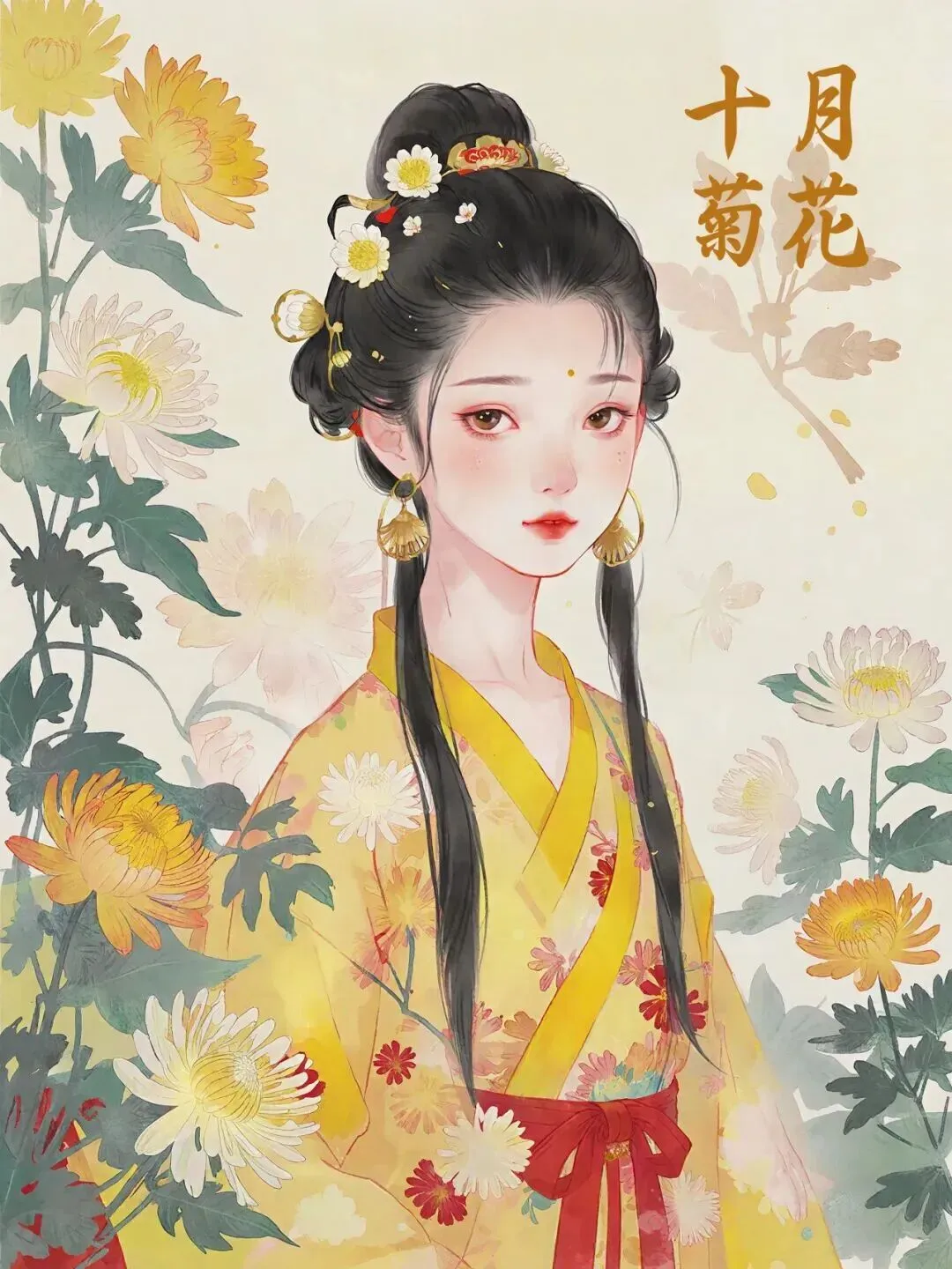 十月重阳时节,秋实登高,菊花思故,为当月令花。菊花千年来借喻品行高洁之人,不与尘世合污,有为隐士之花。