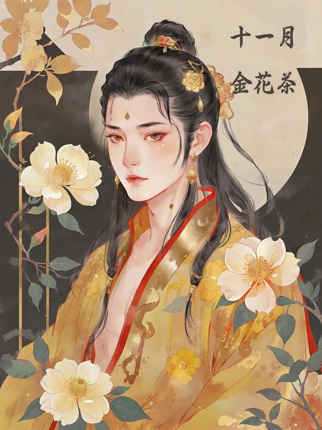 十一月,当月令花,金花茶。“茶族皇后“,壮乡名望。高贵富足,花色金贵,花瓣光滑,花蕾浑圆,低垂盛开,流金溢彩。其贵气由花溢出,像极北海人千百年和平滋养,大海潮气加持,贵气自溢。