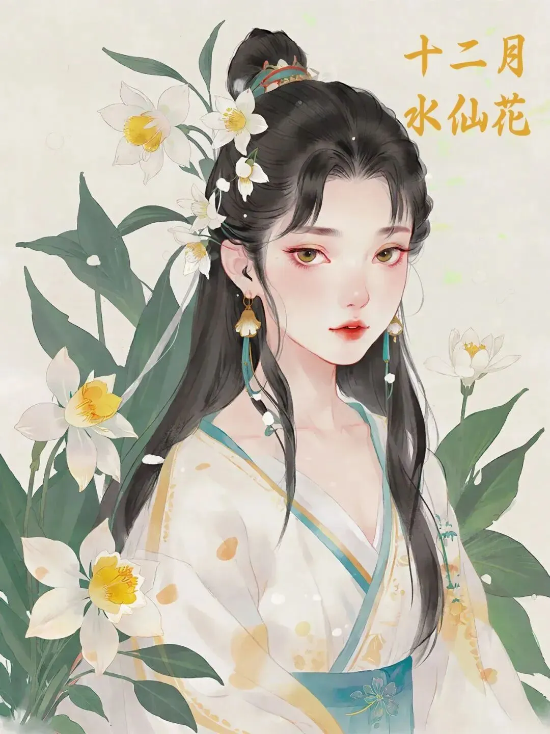 十二月,一年尾牙,根植过去,绽放未来,意为水仙当令。水仙花由叶丛抽出,花蕊呈黄,花瓣为白,全花绿黄白三色交织,宛如生活全年多色盎然,喻有脚踏实地之意,可谓北海人之特性,尾牙清心,为的下年经略。各花各愿,礼毕福祝,美好相伴。