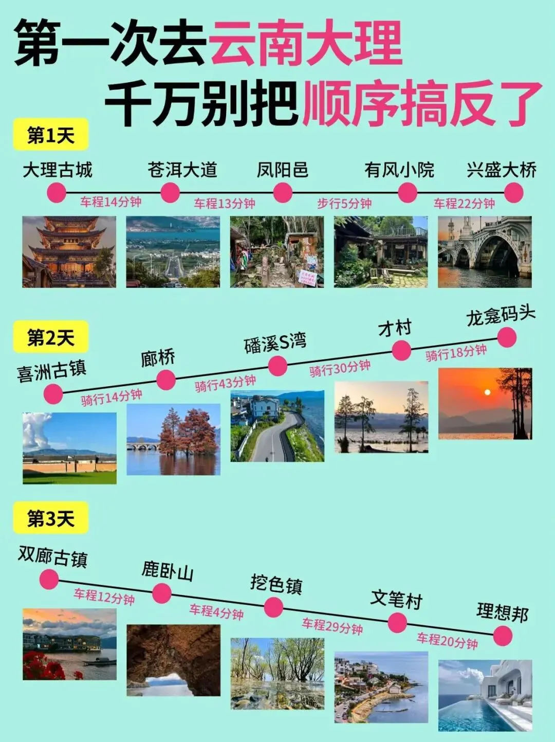 🌟 大理天气阴晴不定,做好防晒,带好雨具。