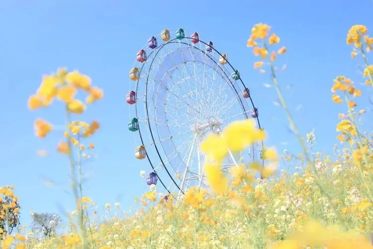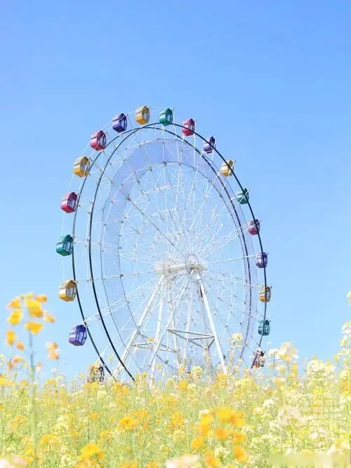 游乐项目:48米高的摩天轮(30元/人),可俯瞰整个园区美景,浪漫治愈;还有彩虹滑道、高空秋千、空中飞索、游船等项目,既有免费的儿童滑梯、蹦蹦床,也有付费游乐项目,按需选择。