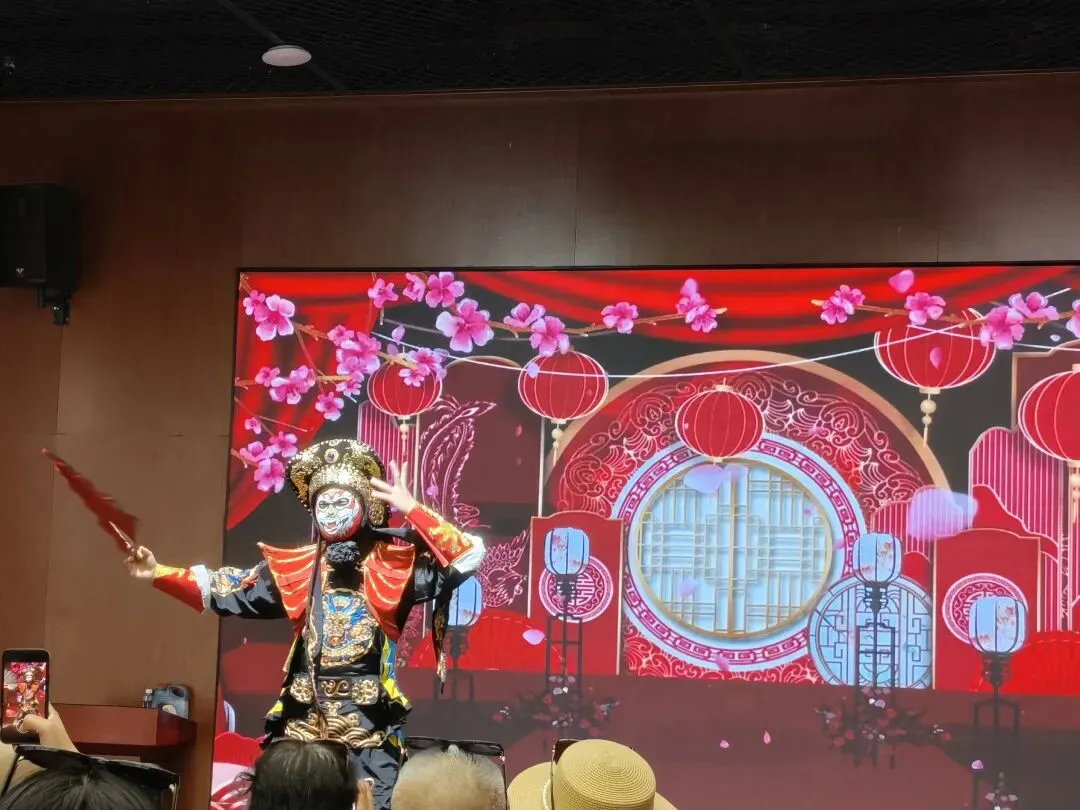 在海岱楼,安排了一场非遗文化盛宴:手艺人变魔术、川剧变脸、字画书写。
