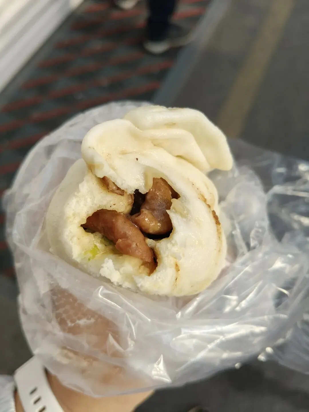 在八大局的过早,是以包菜肥肠包和香辣鱿鱼包为开端,超级好吃。很新奇的味道,但是没有一点异味,处理得非常好。