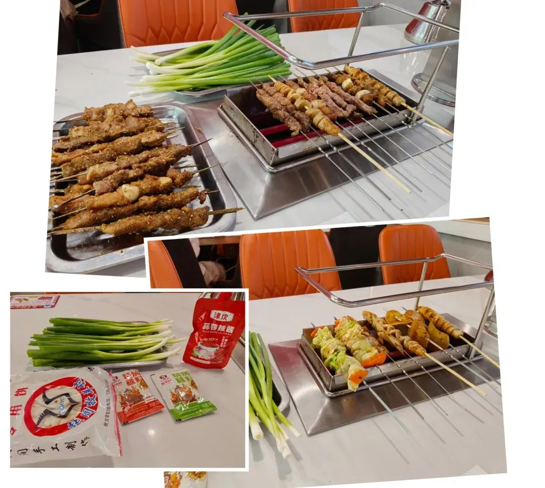 个人比较喜欢淄博的烧烤,和武汉的不一样,七八分熟后端上桌,自己再烤三五分钟,滋滋冒油就可以吃了。