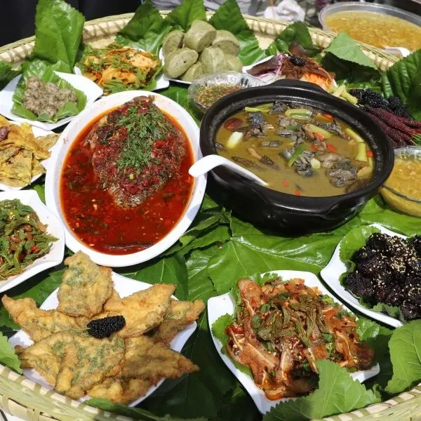 季节限定的全桑宴已上线!油炸桑叶酥脆喷香,桑叶煎蛋香嫩回甘,桑柏鸡汤清甜润喉,桑葚糖醋排骨软糯酸甜,凉拌桑叶尖清爽开胃,一口下去,满嘴都是西邑的春天。
