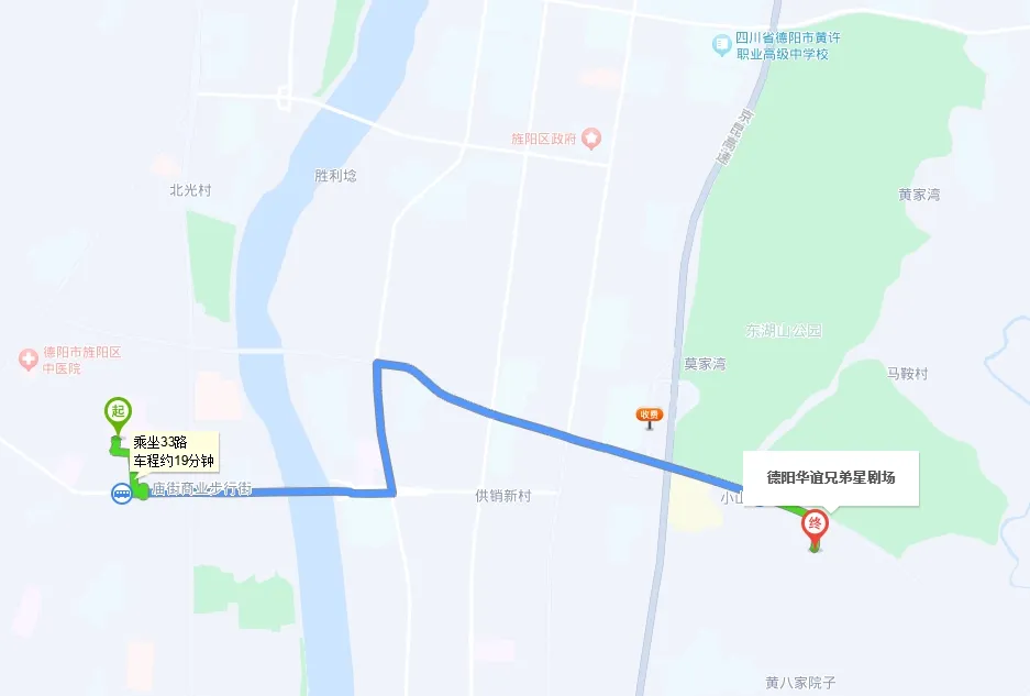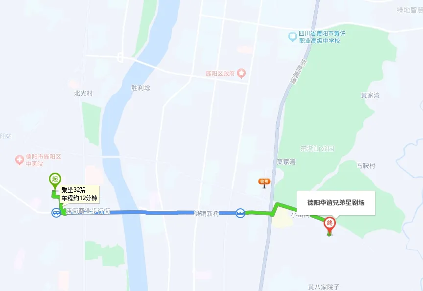 • 公共交通:德阳市内公共交通发达,可乘坐公交前往玄珠湖公园、东湖山公园和华谊星剧场。德阳文庙新天地美食街和德阳文庙附近也有多个公交站点(33路、6路、32路、7路、10路、7B路、26路),出行十分便利。