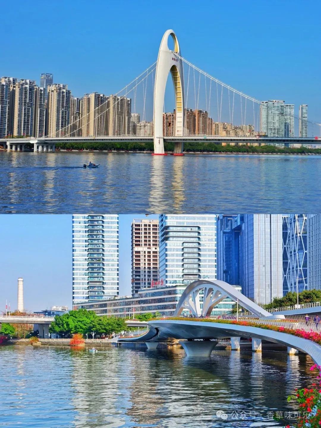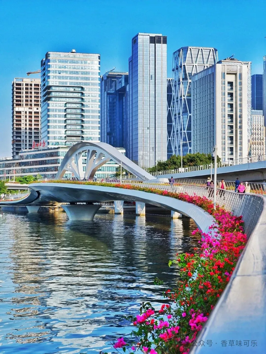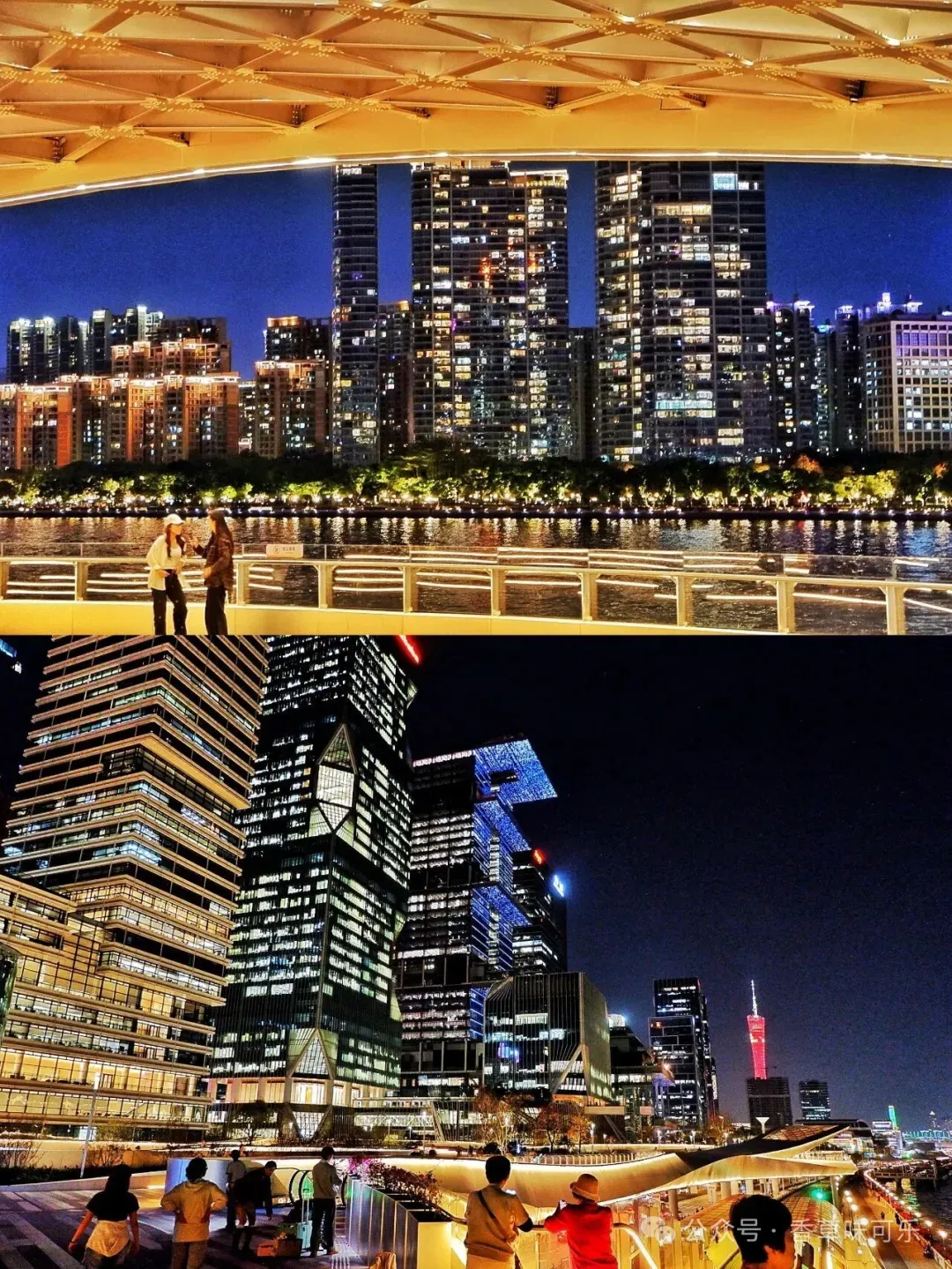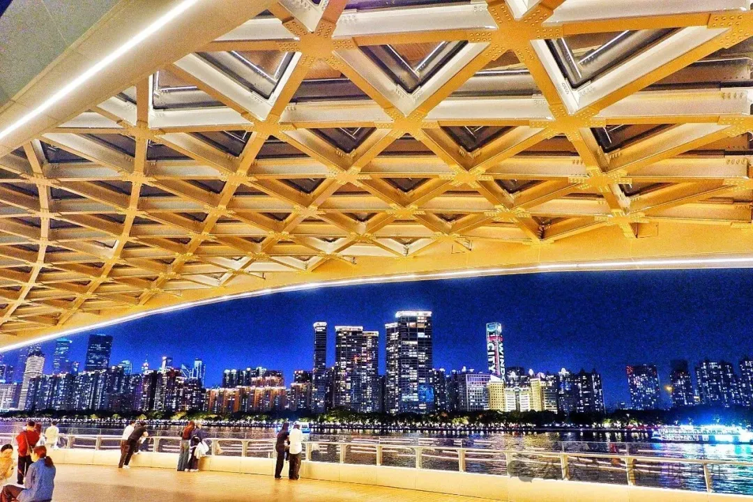 🔹海心桥:以曲梁斜拱设计闻名的跨珠江人行桥,广州塔与江景的绝佳机位。