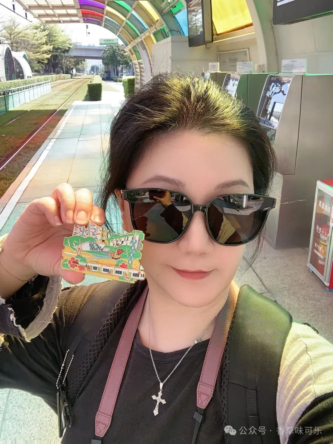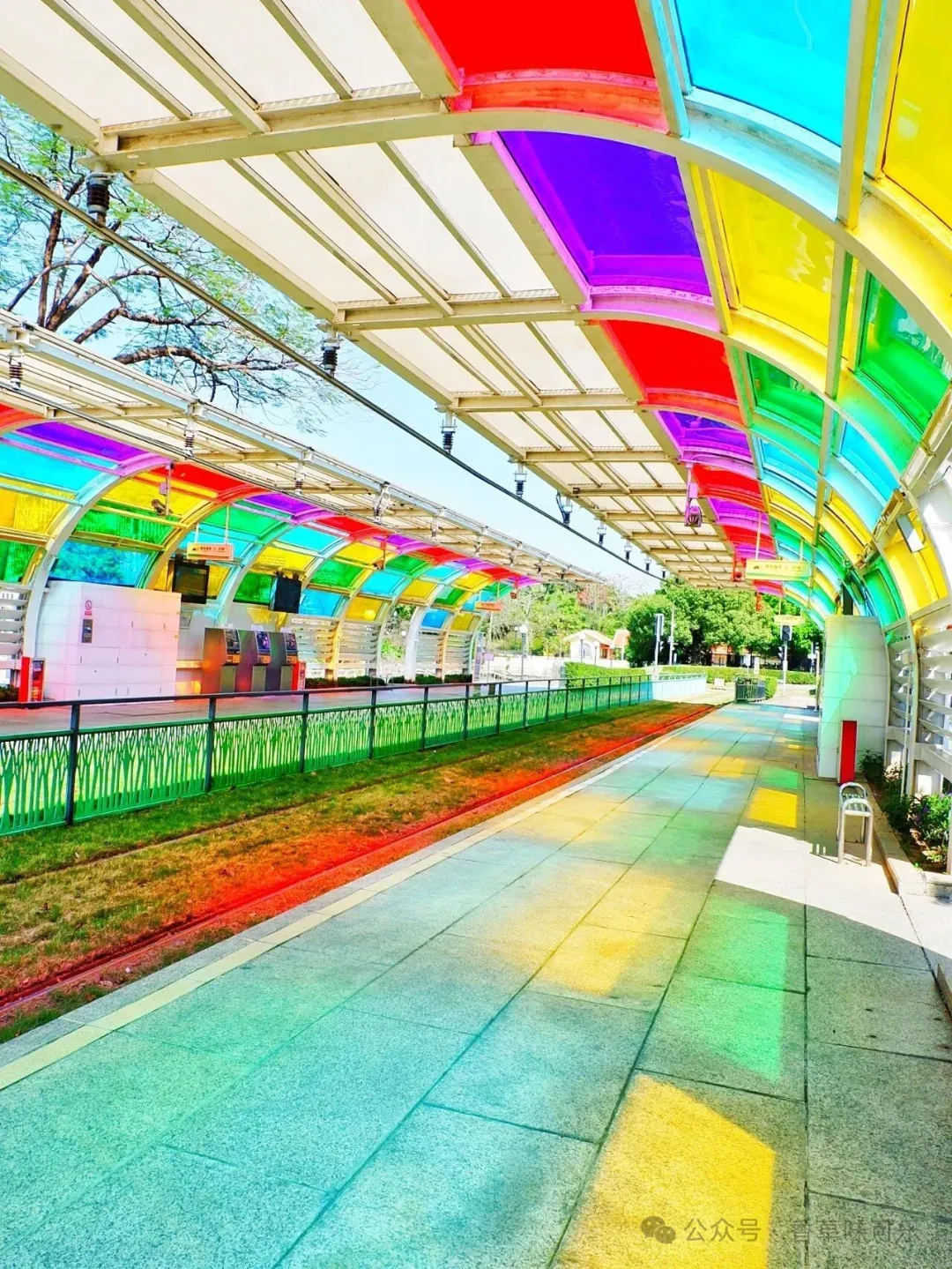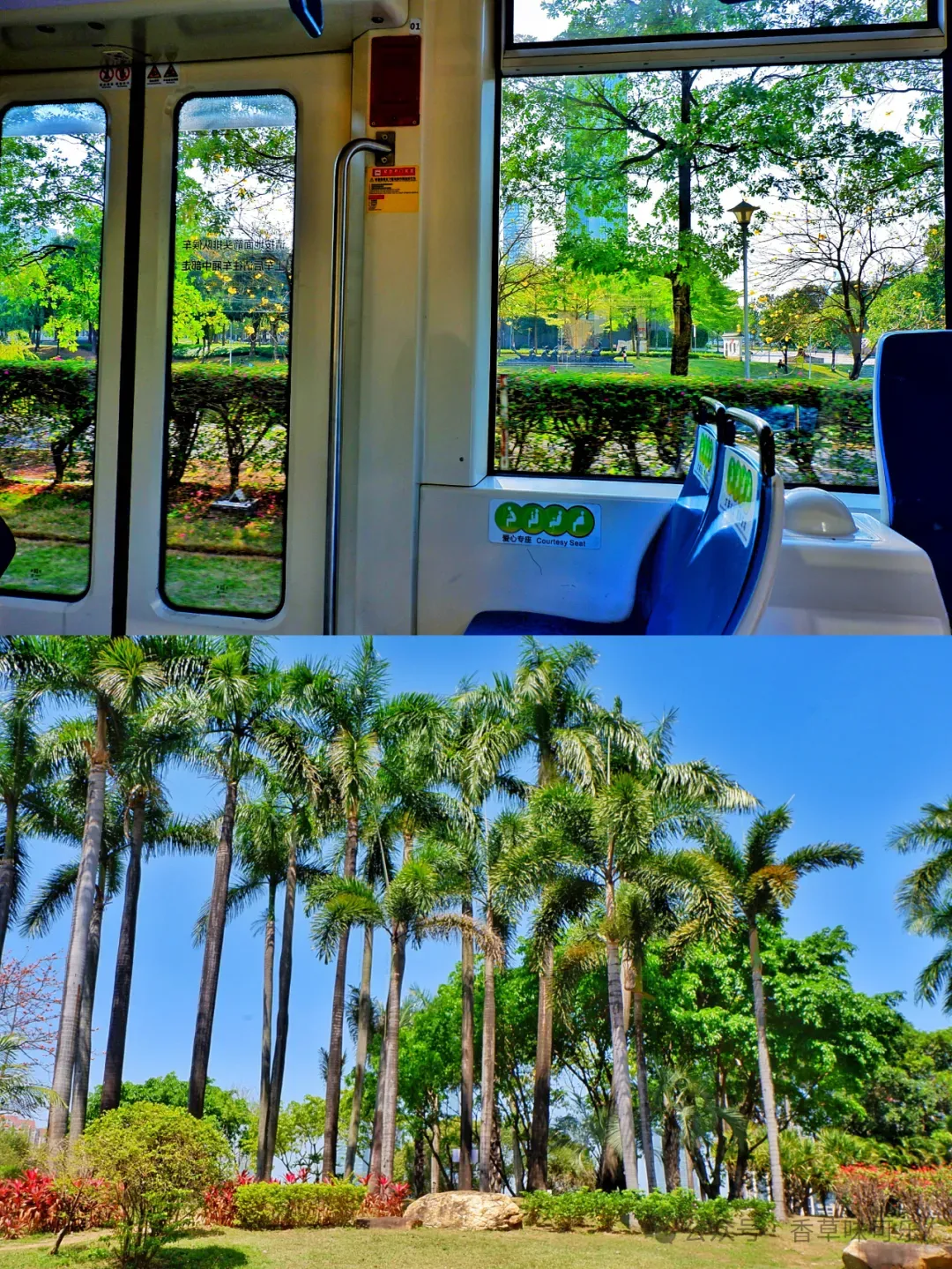 🔹绿茵站台:不远处的天桥,可以看到观光车从站台开出(驶入)。