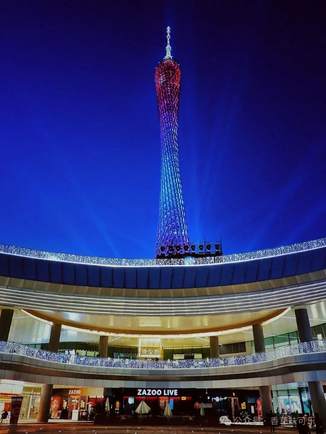 🔹广州塔广场:美食眼花缭乱,夜景机位更是热闹,不再是平庸游客照。