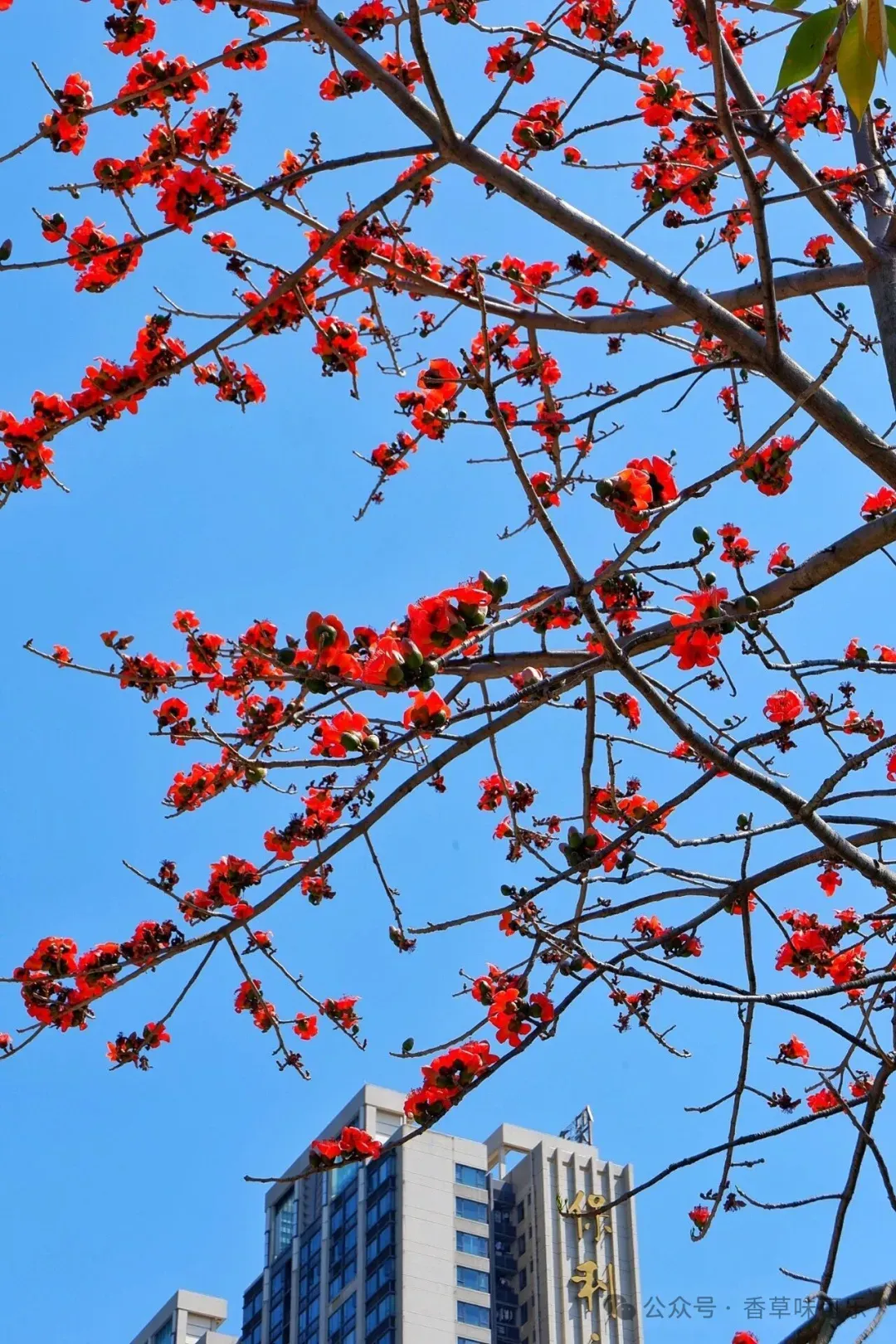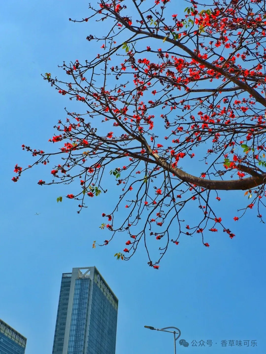 🌹木棉是广州的市花,也叫英雄花,其高大挺拔的树形、红艳如火的花朵,以及它所承载的英雄气概与文化象征。