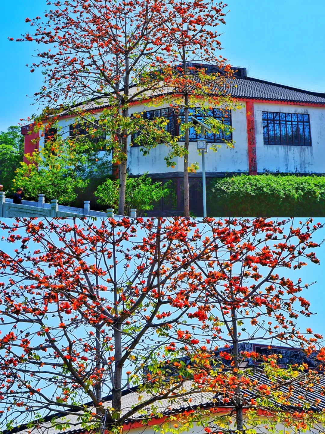 🏯木棉身后的仿古建筑,与农讲所的红墙绿瓦各有各美。