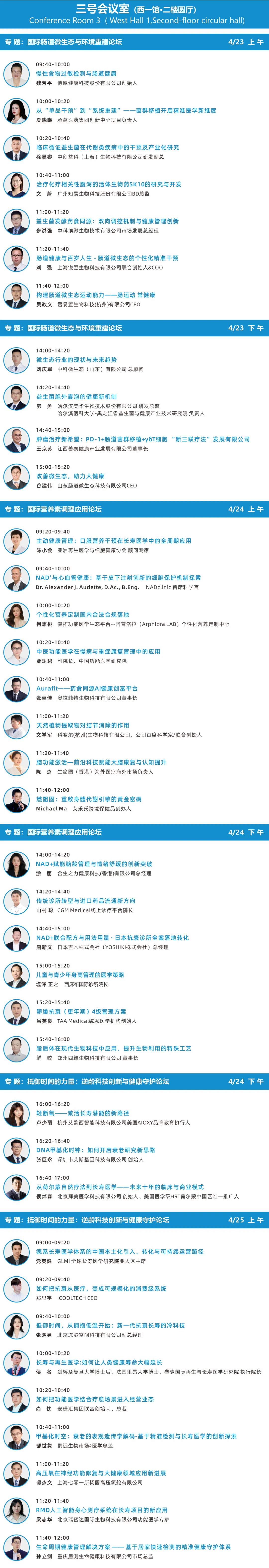 现场将同步举办十余场高端论坛,包括"国际辅助生殖医学论坛"、"国际精密体检与肿瘤医学论坛"、"国际细胞外泌体与再生医学论坛",以及长寿科技、功能医学、肠道微生态等前沿方向深度研讨,汇聚行业顶尖专家分享最新成果。