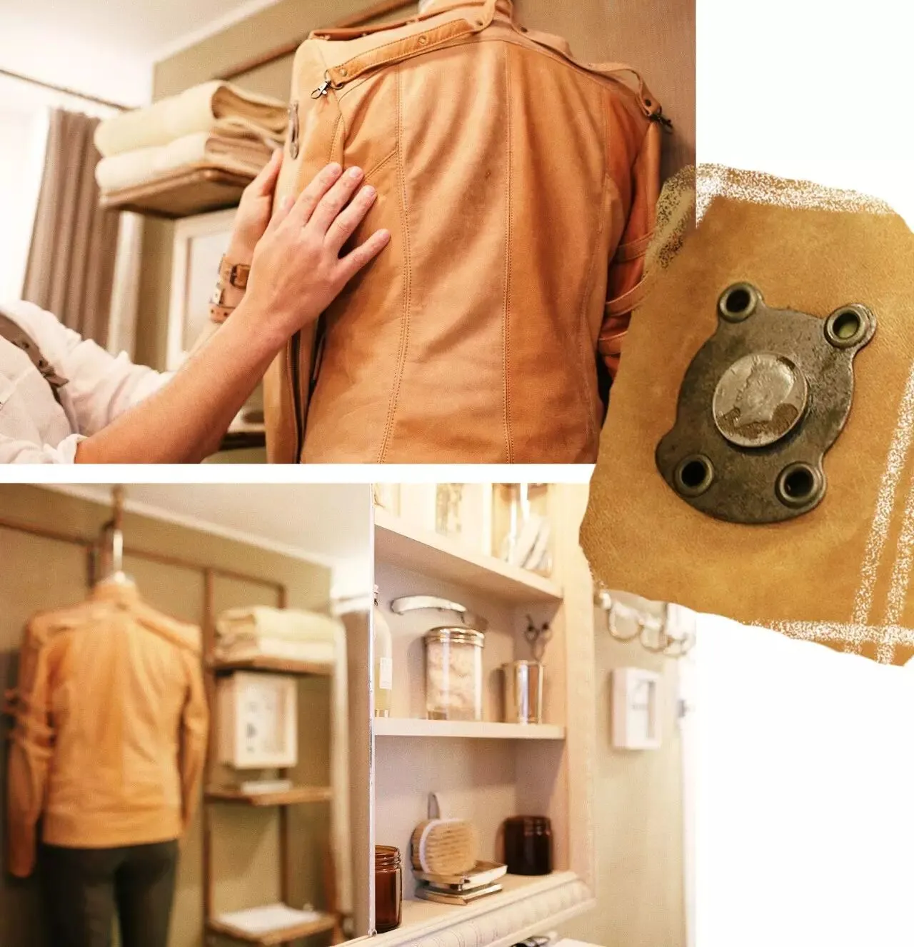人台模特上的服装自然也是出自他手,卫生间里挂着的手工皮衣,是他用回收的旧沙发的皮革制作的。