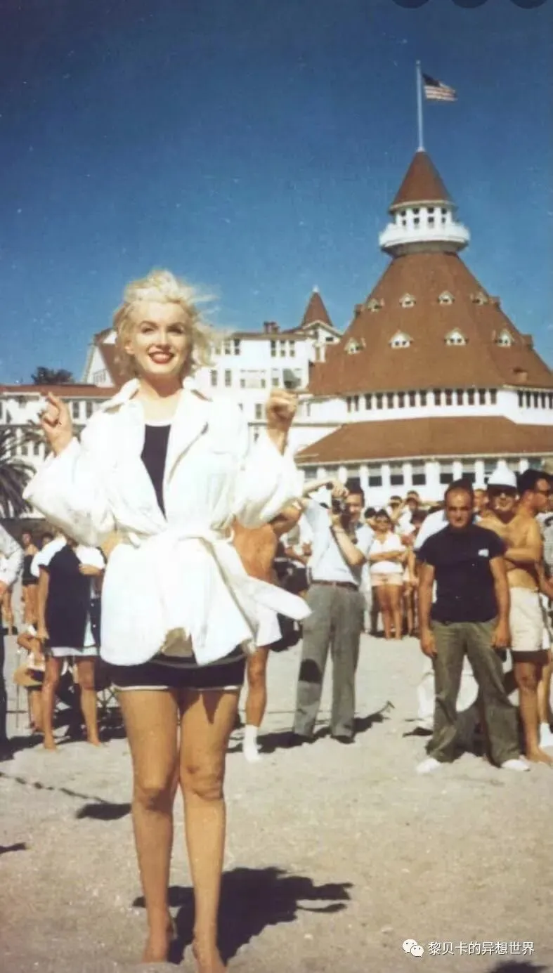 我在1959年梦露拍something like it hot 的圣地亚哥小岛上啦 就拿着照片致敬女神▼