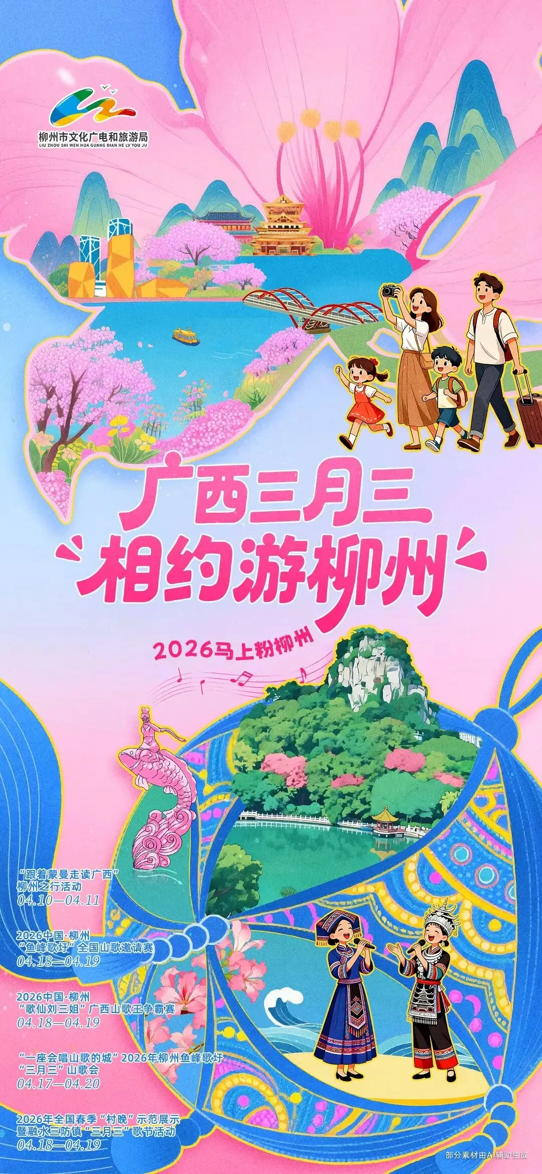 锁定2026中国·柳州“鱼峰歌圩”全国山歌邀请赛,一起听山歌、赏美景、品美食,感受千年歌圩的无限魅力!在柳州,等你赴约,共赴春日狂欢。