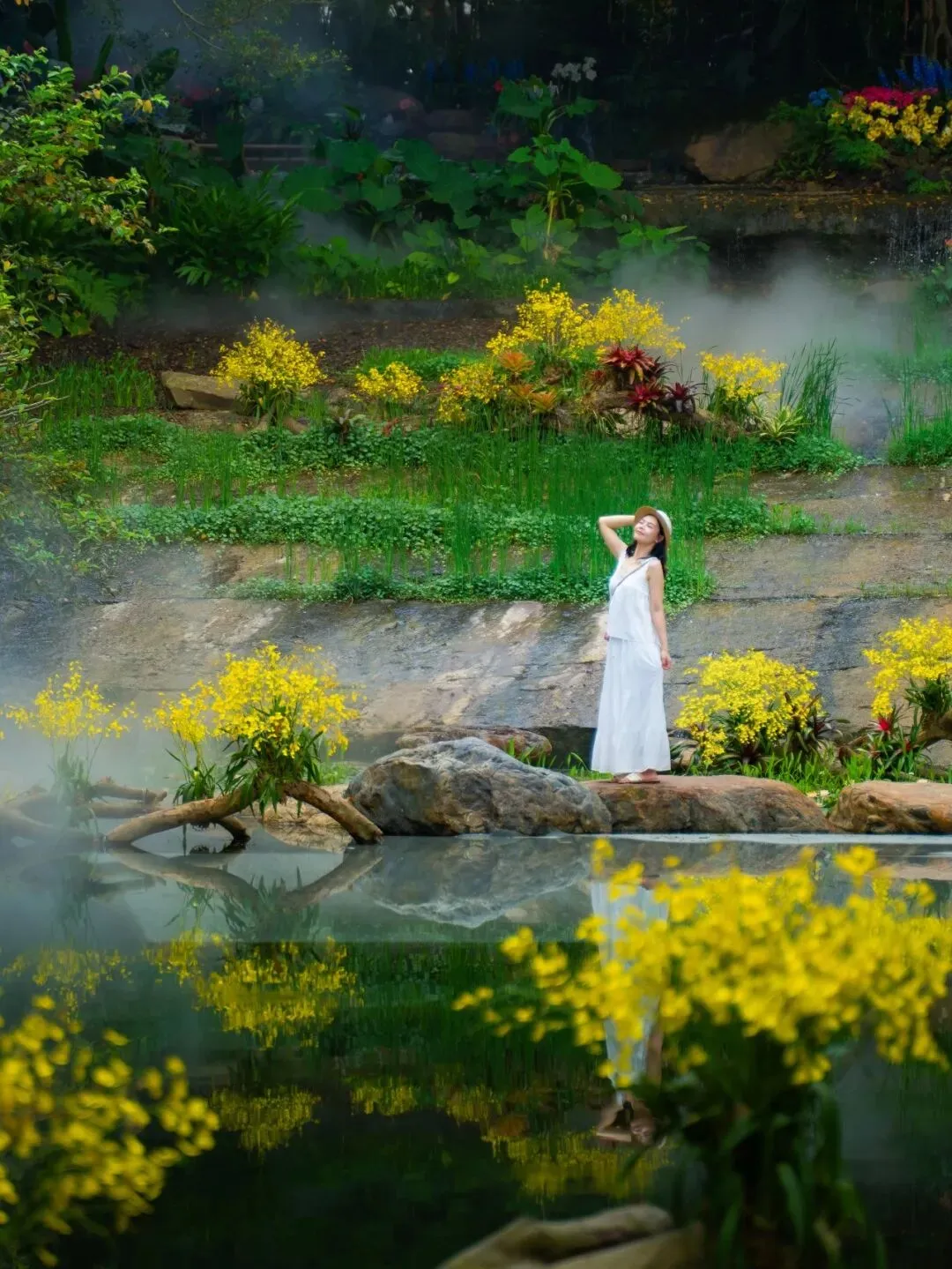 快闪歌舞会突然在你身边闪现,盛装的舞者从人群中旋出,邀你一起加入这场即兴的狂欢。民族服饰巡游队伍从翠屏兰香出发,穿过山水画廊、空中花园,最终抵达怀石叠瀑。衣香鬓影,步步成景,宛如流动的画卷。