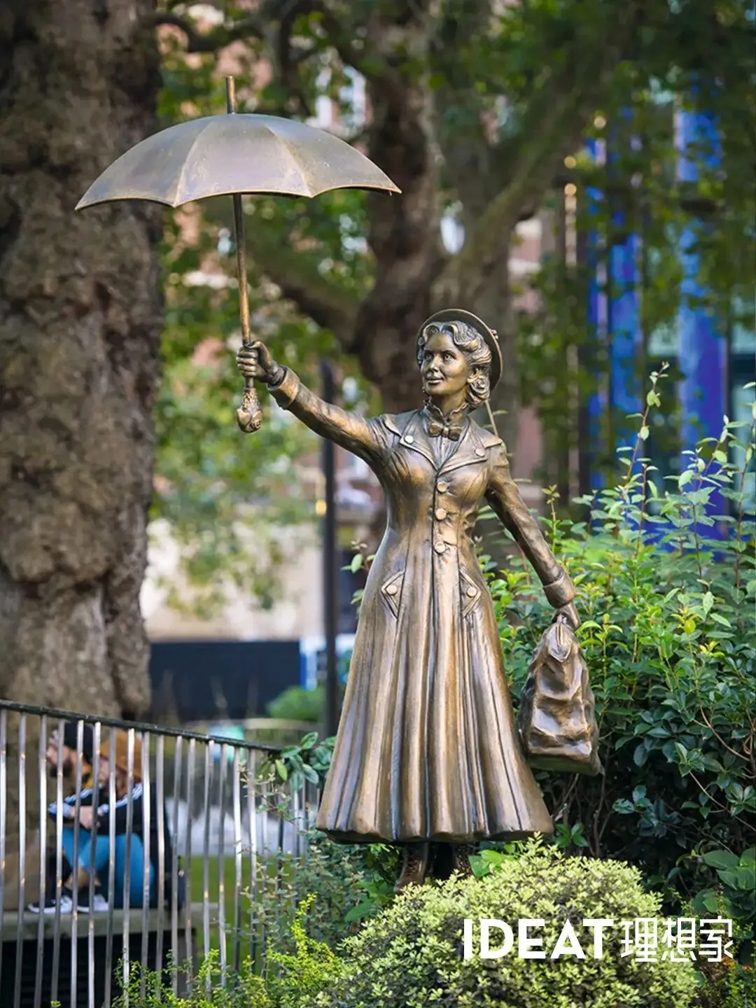 ▲ 这座雕像是世界上最有名的保姆——魔法保姆(Mary Poppins),自2020年3月起树立在莱斯特广场(Leicester Square),同时树立的还有其他7个经典的电影人物,包括蝙蝠侠、帕丁顿熊、劳拉和哈迪、憨豆先生等等。