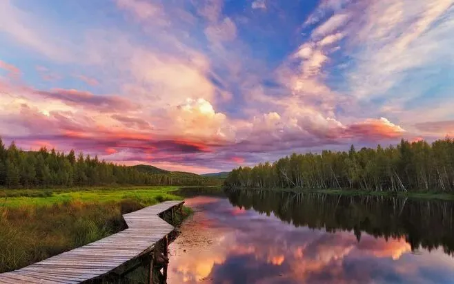 4.临江屯:一座紧邻额尔古纳河的俄罗斯民族村落,村内居民多为俄罗斯后裔,保留着浓郁的俄罗斯民族风情,房屋多为木质结构,屋顶覆盖着茅草,充满异国风情。春夏季节,村落周边绿草如茵,野花绽放,可漫步江边,远眺对岸俄罗斯的村庄,欣赏界河风光;傍晚可观赏界河日落,夕阳洒在江面上,波光粼粼,绝美无比;秋季,村落被金黄的草木环绕,与俄罗斯风格的房屋相映,仿佛置身于俄罗斯乡村,可体验俄罗斯族的传统美食和民俗文化。