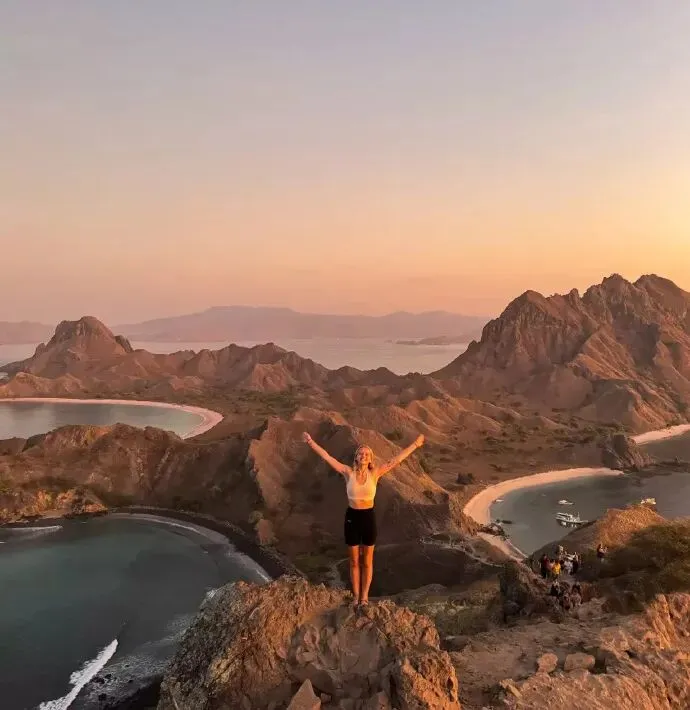 一日之内全是王炸!登顶帕达尔岛,全球罕见一海四湾三色海滩尽收眼底;在科莫多岛,与“恐龙后裔”科莫多巨蜥不期而遇;傍晚在绝美浪漫的马卡龙色沙湾上收藏落日余晖;最后看卡隆岛的蝙蝠阵,为夕阳图上梦幻剪影;