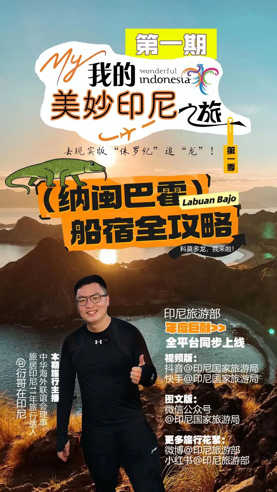 “带着对山海和古老生命的执念——纳闽巴霍(Labuan Bajo),我来啦!”旅居印尼11年的资深大咖博主衍哥(全网ID@衍哥在印尼)带您前往的是印尼东部,最奇幻的山海奇景、探寻最神秘的“恐龙近亲”……纳闽巴霍+科莫多岛四天三晚经典船宿之旅。