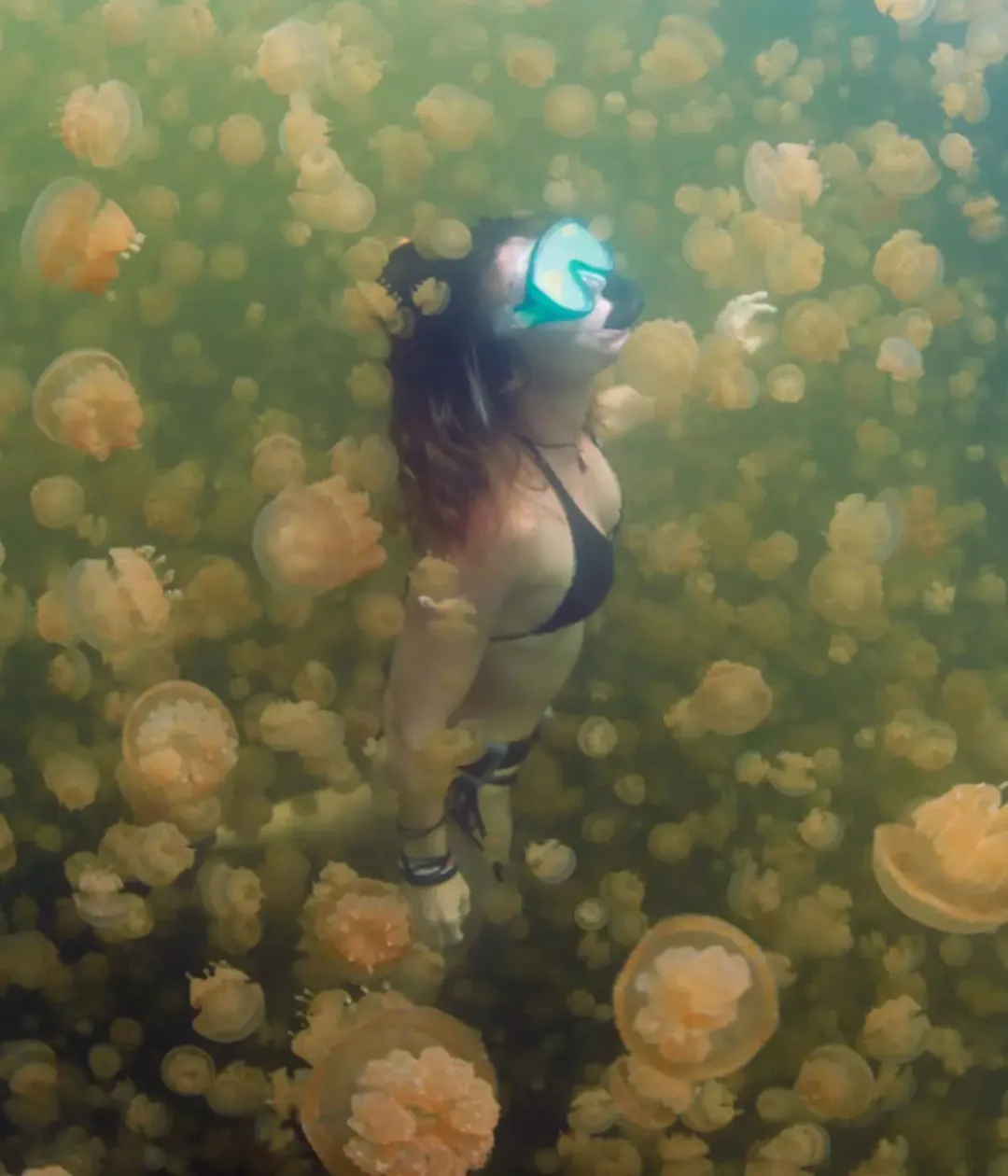 在圣加拉奇岛(Sangalaki,又名海龟岛)看百岁大海龟,在潜水点与魔鬼鱼(Manta Ray)同游;随后前往水母湖(Jellyfish Lake),与世界罕见的、数百万只无毒黄金水母共泳。