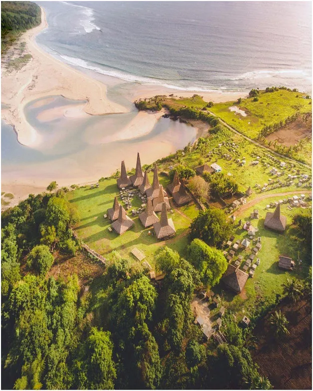 一日串联松巴三大精华,上午探访拉滕加罗传统村落,欣赏高耸茅草屋顶的独特房屋;午后前往威库利湖,在碧蓝潟湖畅游;傍晚时分抵达曼多拉海滩,看礁石跨越亿年的对话,欣赏夕阳将海面染成金红的壮丽景色。