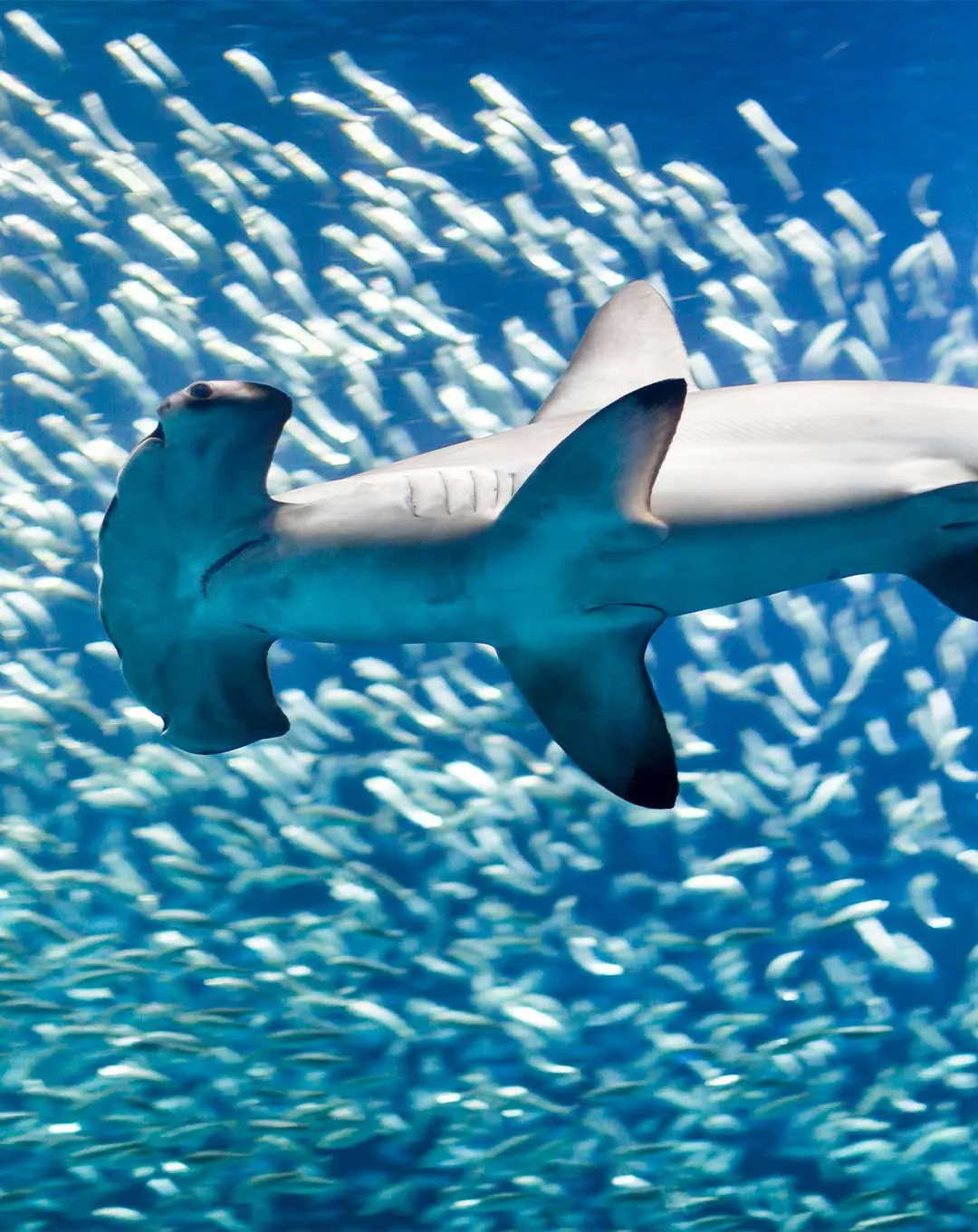 班达海有多个锤头鲨潜点,最著名的是:鲨鱼山(Karang Alor):海底山脉从深海平原拔地而起,顶部距水面仅15-20米。这里是观赏锤头鲨风暴的最佳地点。清晨下潜,阳光穿透湛蓝海水,数十条甚至上百条锤头鲨如幽灵舰队般缓缓游过,它们奇特的身影在光线中若隐若现,那份震撼无法用语言描述。
