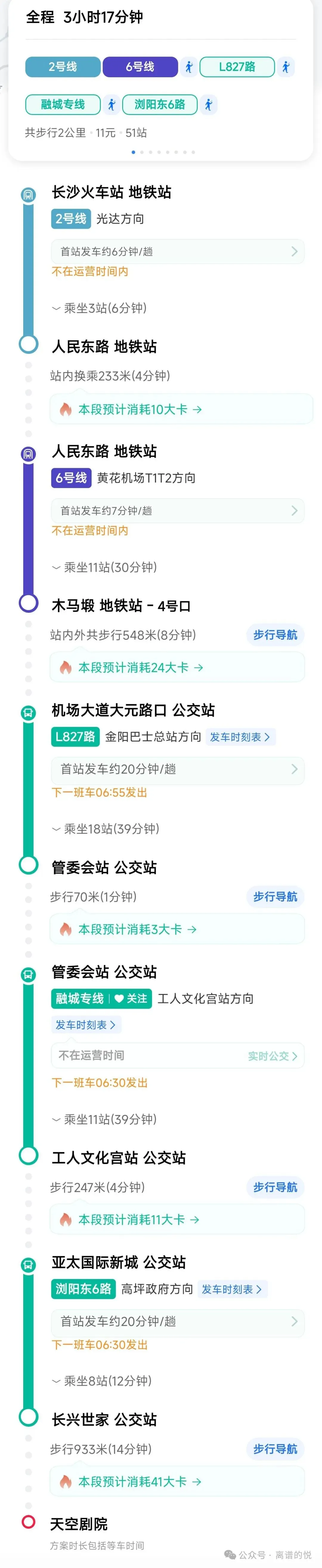 耗时三个半小时,具体路线如下,花费三十一块钱,也可以拼车,大概需要70多块钱(这是我返回时候拼车的价格)可能也会花费170左右的价格,吧。所以早点出发,坐会儿地铁公交其实一下子就到了,哈哈。要是到了长沙肚子饿了的话,建议还是先去天空剧院,因为现场有很多的小吃摊,超级多的好吃的。不要为了想在长沙吃点什么了再去,因为很可能会错过时间。