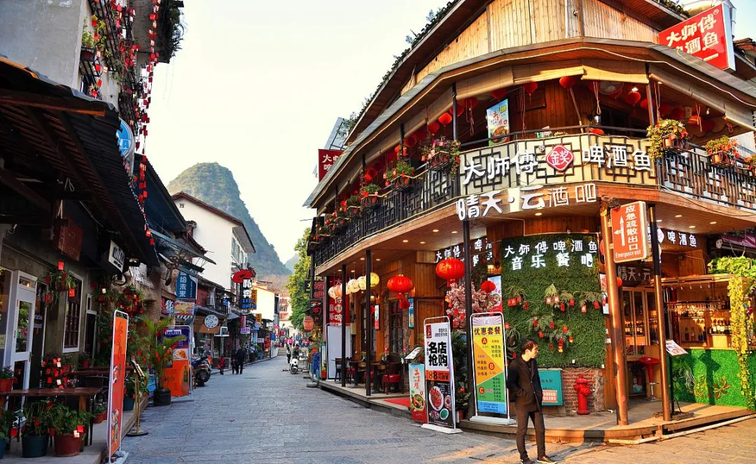 阳朔跟桂林市区完全是两个感觉, 桂林是那种温和的, 阳朔就有点野, 但这个野不是乱, 是一种自由的野。你走在西街上, 能看到各种人, 有背着吉他的流浪歌手, 有卖手工艺品的摊主, 有骑自行车的外国人, 大家都在那待着, 但谁也不管谁。我一开始觉得这地方有点吵, 有点乱, 但待了一晚上就明白了, 这个地方的好就在于它不装, 它就是这么个样子, 你爱来来, 不来拉倒。