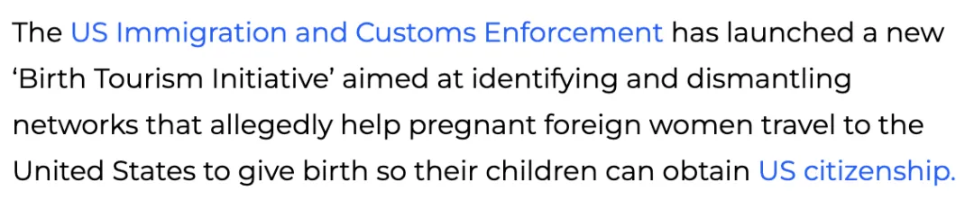 专家认为,ICE选择在此时发起专项行动,具有明显的政治信号。特朗普政府想要通过打击“生育旅游”来为废除出生公民权铺平舆论道路。