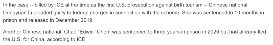 特别是南加州,在2019年的一起联邦案件中,10多名在南加州经营“月子中心”的人被起诉,一位中国公民Dongyuan Li被判处10个月监禁。