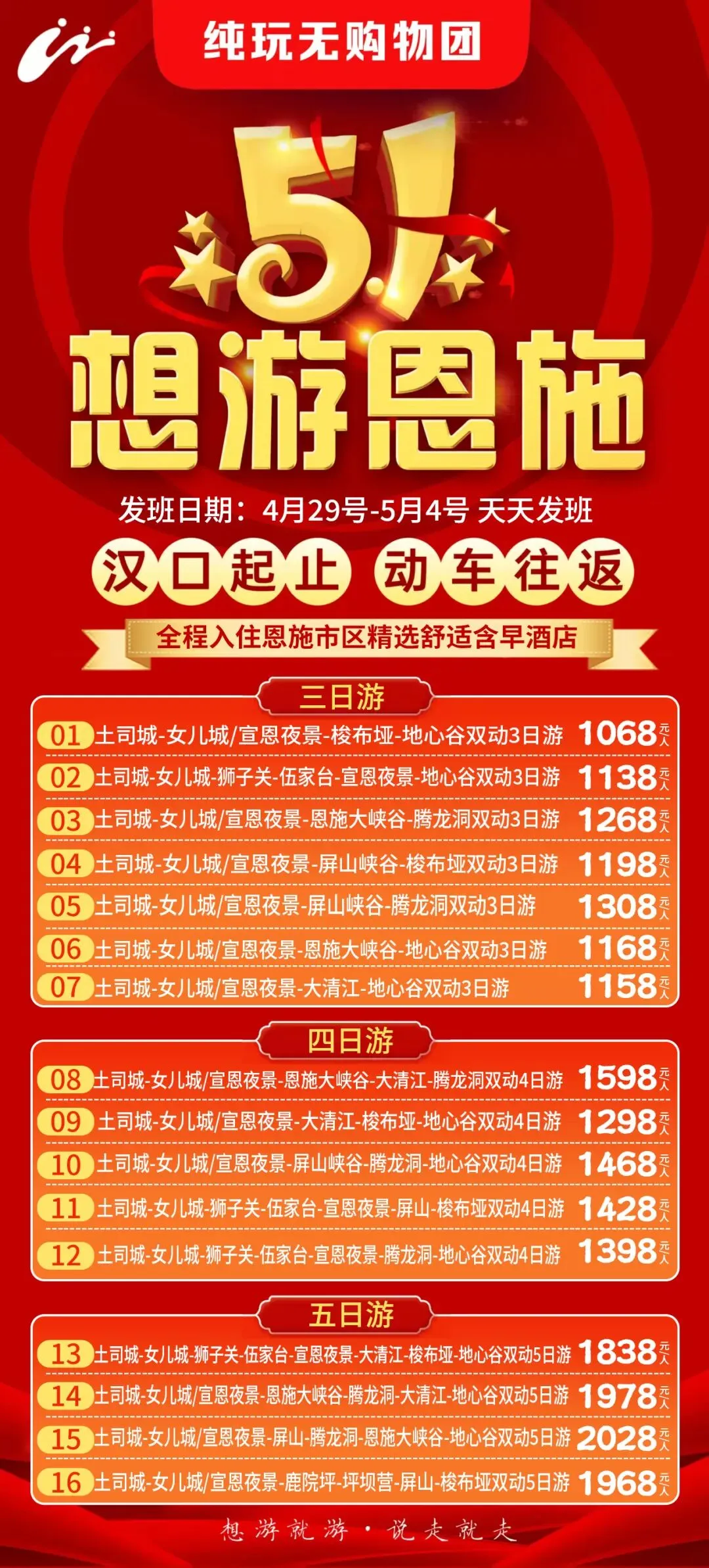 2026年五一假期湖北周边旅游计划|五一汽车游|汽车1日游|汽车2日游|汽车3日游|动车火车旅游|武汉出发