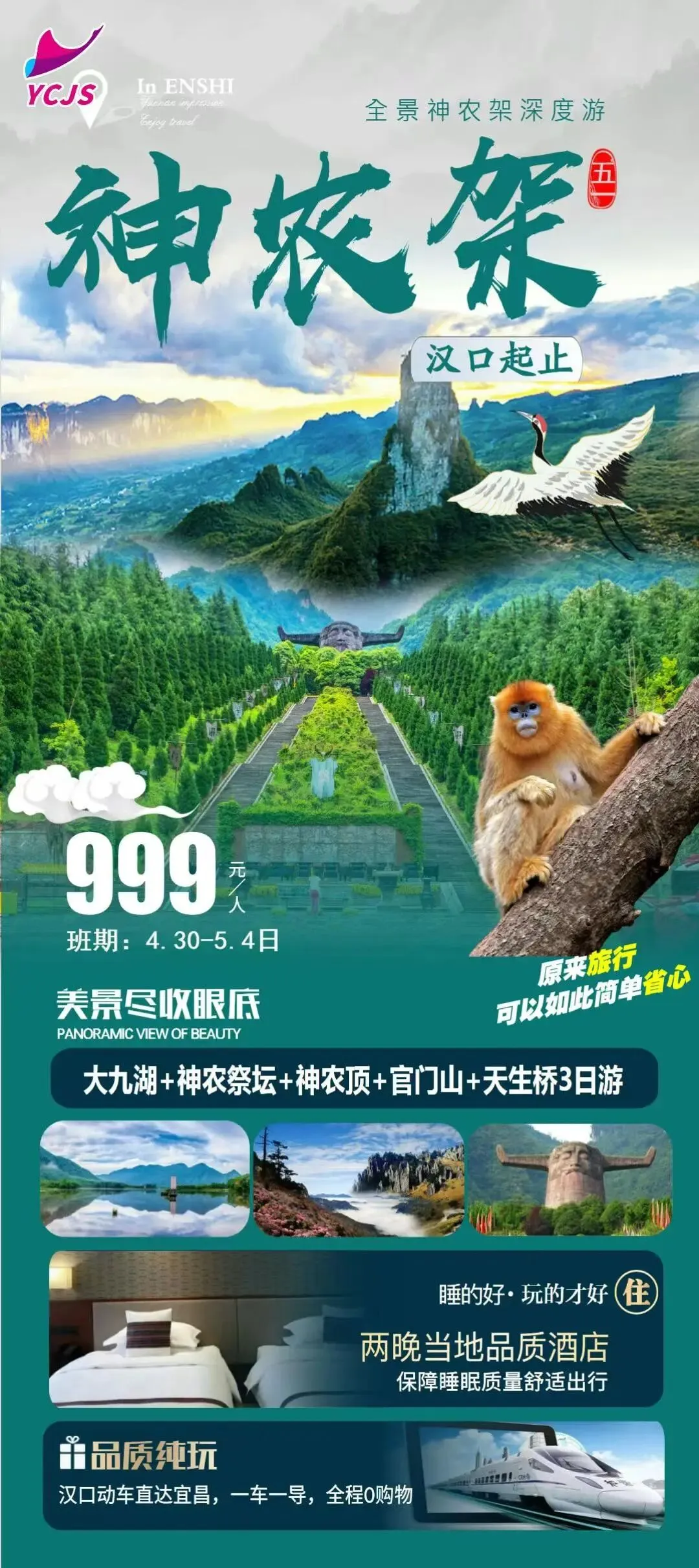 三、五一周边火车动车1-3-5日游:宜昌三峡/神农架/恩施/庐山/黄山/云台山~~~~武汉出发 1、动车周边游