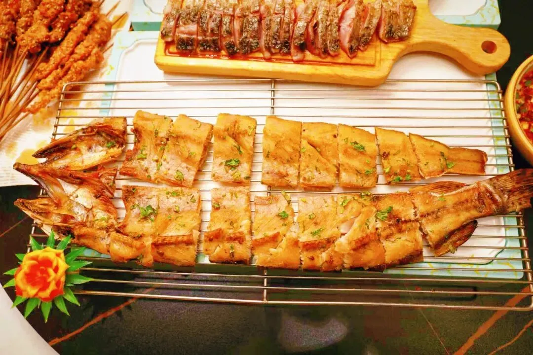 到了东北的东北——饶河,怎能错过东北烧烤?推荐在八五九农场尝尝当地特色的红柳枝烧烤——粗壮的柳条串起大块肉,炭火一烤,木香浸入肉中,豪迈又鲜香。更不可错过的是明火慢烤的江鱼,乌苏里江的鲜鱼在火上细细翻滚,外皮酥脆泛香,鱼肉却依然洁白细嫩。