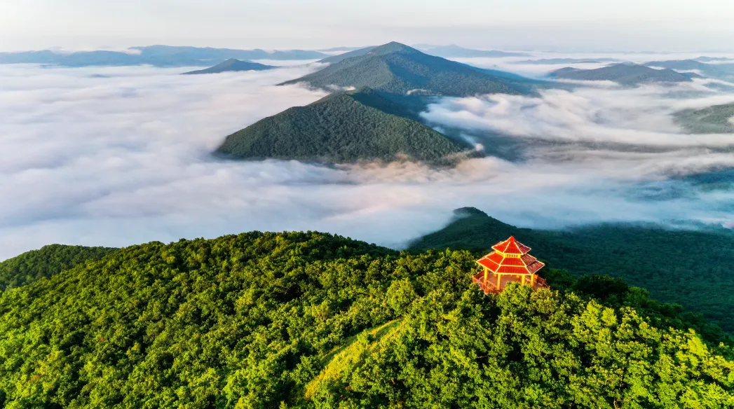 大顶子山森林茂密,植被丰饶,空气清新。这里春日可赏兴安杜鹃漫山绽放;夏日宜人,是避暑消夏的绝佳去处;秋日则层林尽染,五花山色如诗如画。您可沿着步道漫步至祥云亭,来一场轻快的森林短行;亦可登临天佑阁,俯瞰远眺,将乌苏里江的蜿蜒秀水与无垠林海的苍翠浩瀚一并收入眼底——在这片天然的氧吧里,静静感受边陲山河的壮美与宁静。游览结束后,不妨前往山脚下的小南河关东风情民俗村,品尝地道的农家风味。