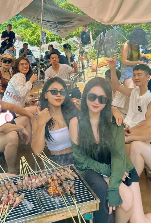 逛完小镇,我们组织大家露营烧烤。