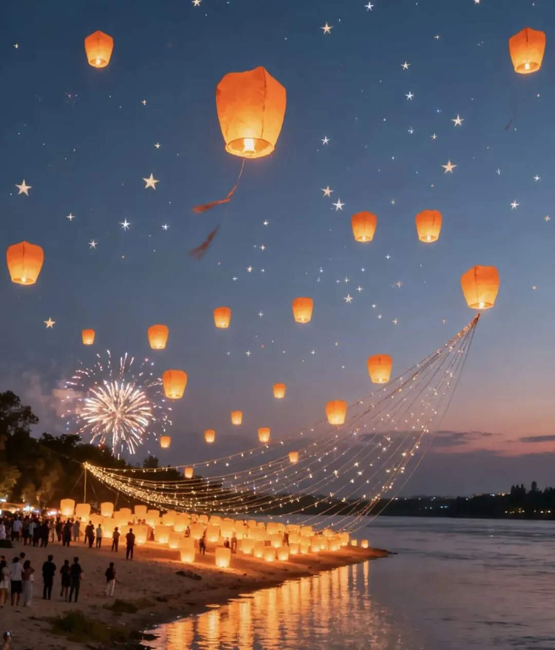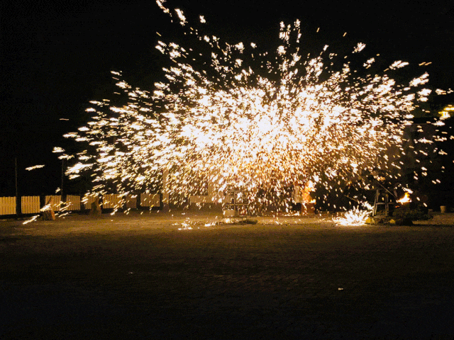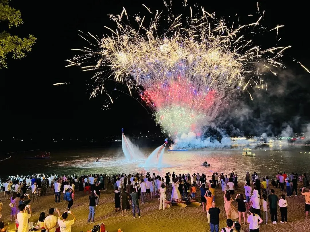 19:30 开始篝火派对,沙滩蹦迪,海上烟花,非遗打铁花,放小烟花和孔明灯
